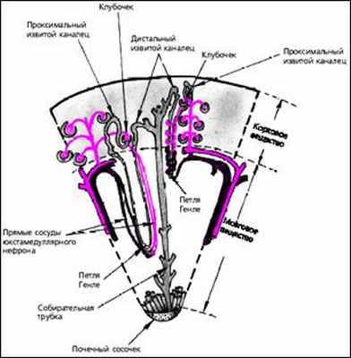 Почка, rеп, — парный экскреторный орган, образующий и выводящий мочу. Различают переднюю поверхность, faces anterior, изаднюю поверхность, faces posterior, верхний конец(полюс), extremitas superior, инижний конец, extremitas inferior, а также латеральный край, margo lateralis, и медиальный край, margo medialis. В среднем отделе медиального края имеется углубление — почечные ворота, hilum renalis. В почечные ворота вступают почечная артерия и нервы, выходят мочеточник, почечная вена, лимфатические сосуды. Почечные ворота переходят в почечную пазуху, sinus renalis.Стенки почечной пазухи образованы почечными сосочками и выступающими между ними участками почечных столбов. ^ Топография почек. Почки расположены в поясничной области (regio lumbalis) по обе стороны от позвоночного столба, на внутренней поверхности задней брюшной стенки и лежат забрю-шинно (ретроперитонеально). Левая почка располагается несколько выше, чем правая. Верхний конец левой почки находится на уровне середины XI грудного позвонка, а верхний конец правой почки соответствует нижнему краю этого позвонка. Нижний конец левой почки лежит на уровне верхнего краяIII поясничного позвонка, а нижний конец правой почки находится на уровне его середины. ^ Оболочки почки. Почка имеет несколько оболочек: фиброзную капсулу, capsula fibrosa, жировую капсулу, capsula adiposa, и почечную фасцию, fascia renalis. Строение почки.Поверхностный слой образует корковое вещество почки состоящее из почечных телец, проксимальных и дистальных канальцев нефронов. Глубокий слой почки представляет собой мозговое вещество, в котором располагаются нисходящие и восходящие части канальцев (нефронов), а также собирательные трубочки и сосочковые канальцы. Структурно-функциональной единицей почки является нефрон, nephron, который состоит из капсулы клубочка,capsula glomerularis и канальцев. Капсула охватывает клубочковую капиллярную сеть, в результате формируется почечное (мальпигиево) тельце,corpusculum rendle. Капсула клубочка продолжается в проксимальный извитой каналец, tubulus contortus proximalis. За ним следует петля нефрона, ansa nephroni, состоящая из нисходящей и восходящей частей. Петля нефрона переходит в дистальный извитой каналец, tubulus contortus distalis, впадающий в собирательную трубочку, tubulus renalis colligens. Собирательные трубочки продолжаются в сосочковые протоки. На всем протяжении канальцы нефрона окружены прилегающими к ним кровеносными капиллярами. Примерно 1 % нефронов полностью располагается в корковом веществе почки. Этокорковые нефроны. У остальных 20 % нефронов почечные тельца, проксимальные и дистальные отделы канальцев находятся в корковом веществе на границе с мозговым, а их длинные петли спускаются в мозговое вещество — это околомозговые (юкстамедуллярные) нефроны.
