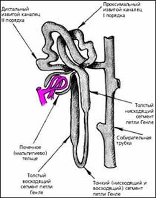 3. тонкий сегмент, состоящий из тонкого нисходящего и тонкого восходящего отделов петли нефрона (Генле)