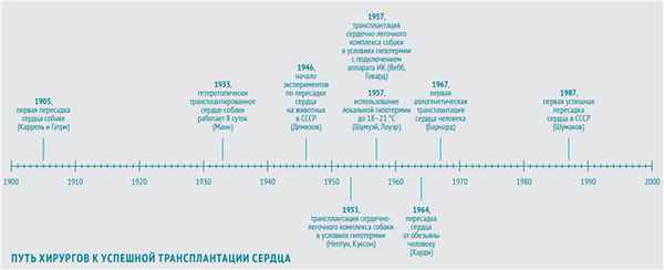 В СССР первая успешная трансплантация сердца была осуществлена в 1987 году знаменитым врачом-трансплантологом академиком АМН СССР Валерием Ивановичем Шумаковым (1931–2008).