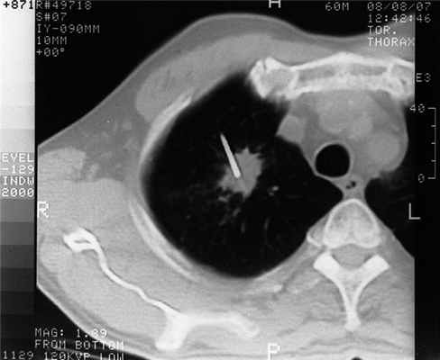 Полученные нами результаты указывают на высокую диагностическую ценность методики трансторакальной пункционной биопсии при очаговых образованиях в легком. Важным моментом является тщательная визуализация патологического очага с выбором направления введения иглы [26]. Именно этот момент обеспечивает применение мультиспиральной компьютерной томографии. Всем пациентам перед проведением процедуры выполняли диагностическую фибро-трахеобронхоскопию, но ни в одном из указанных случаев при исследовании промывных вод бронхов или мазков-отпечатков со слизистой оболочки бронхиального дерева морфологической верификации диагноза не удалось добиться, что совпадает с мнением других авторов [7, 12, 23].