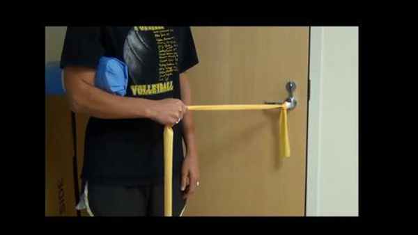 Этот тест может выполняться в положении пациента стоя или сидя. При разогнутом предплечье рука пациента устанавливается в положении отведения 90°, 30° горизонтального сгибания и во внутренней ротации. Врач оказывает сопротивление этому движению путем давления на проксимальный отдел плеча.