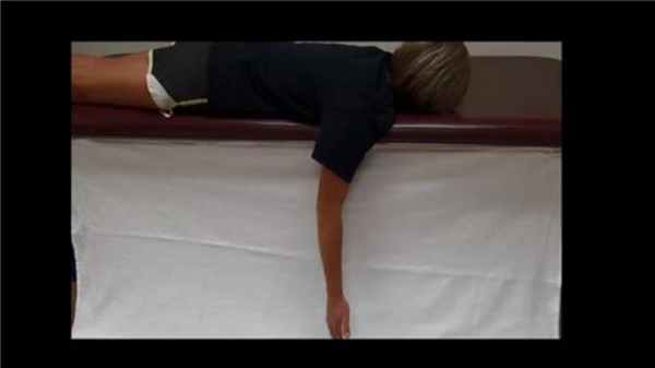 Пациент сидит, врач пассивно отводит разогнутую руку пациента приблизительно на 120°. Пациента просят самостоятельно удерживать руку в таком положении, а затем постепенно ее опустить.