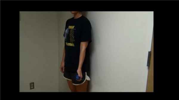 Пациент стоит с опущенными и расслабленными руками. Врач охватывает дистальную треть каждого предплечья пациента своими руками. Пациент пытается развести руки, в то время как врач оказывает сопротивление.