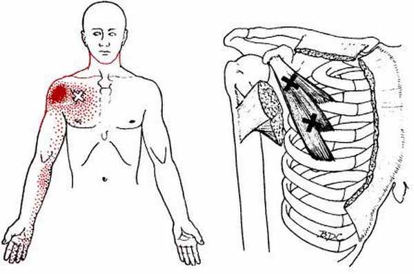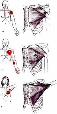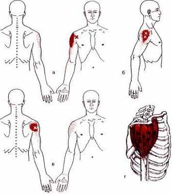 Функция: сгибает и приводит плечо в плечевом суставе. Триггерные точки отражают боль в переднюю часть
