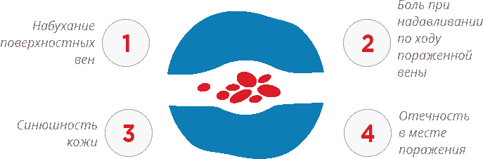 Симптомы тромбофлебита или их отсутствие не являются патогномничными и не позволяют прогнозировать тяжесть заболевания или риск эмболии.