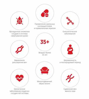 - тромбоз глубоких вен (ТГВ) в анамнезе;