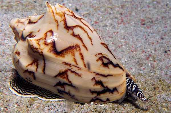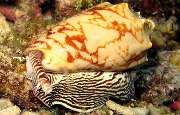 На коралловых рифах обитают необычайно красивые брюхоногие моллюски — конусы (семейство Conidae). Их коническая блестящая раковина с причудливым пестрым рисунком — дорогой и желанный экспонат в любой конхиологической коллекции. Особенно ценятся раковины текстильного конуса (Conus textile) и конуса “морская слава” (C. gloria-maris), входящие также в семерку самых опасных видов.