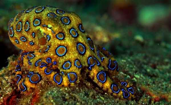 Особенно опасны крохотные осьминоги рода Hapalochlaena, достигающие в размахе щупалец всего лишь 20 сантиметров и распространенные в Индийском океане и у берегов Новой Зеландии, Папуа — Новой Гвинеи и Австралии. Когда такой осьминожек злится, на его голове и щупальцах проступают голубые и лиловые кольца (отсюда его популярное имя “осьминог с голубыми кольцами”). Некоторые туристы, впервые увидев этих симпатичных зверюшек, кладут их себе на ладонь, чтобы полюбоваться переливами изменчивой окраски. Расплата приходит немедленно: незаметный укол ядовитого клюва вызывает сухость во рту, затруднение глотательных движений, тошноту, кровотечение из раны, слабость, нарушение дыхания, потерю сознания и смерть в течение двух часов. Осьминожки обитают на мелководье, так что любой ребенок, ныряющий в маске, может их заметить и загореться желанием поймать. К сожалению, это очень легко сделать, поскольку маленький моллюск не способен удирать так быстро, как его крупные собратья. В заселенных зонах побережья осьминожки строят себе жилища в бутылках, банках, шинах и других отбросах человеческой роскоши.