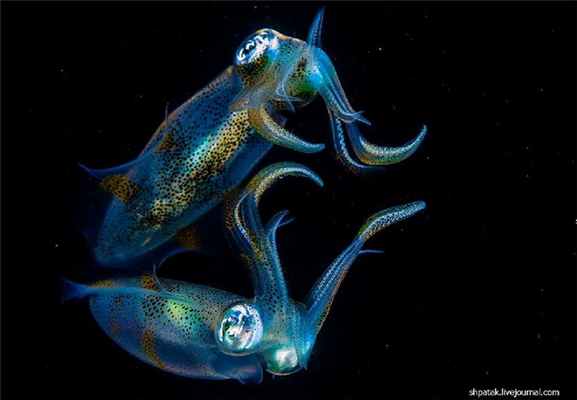 Гигантские спруты наравне с белыми акулами-людоедами стали символом ужаса и страха в подводном мире. Немало фильмов и книг убеждают нас в смертельной угрозе, исходящей от этих таинственных животных. Характерная внешность сделала их прототипом монстров, инопланетян и всевозможной нечисти в многочисленных триллерах и боевиках. Действительно, вид осьминога или каракатицы под водой жутковат и необычен, особенно во время ночного погружения. Кажется, что вот-вот это существо набросится на вас, схватит страшными щупальцами с присосками и унесет с собой в пучину, высосет кровь или сделает еще что-нибудь нехорошее. И лишь опытные аквалангисты знают, насколько безобидным и мирным характером обладают головоногие — правда, за редким исключением типа гигантских осьминогов Дофлейна и кальмаров Гумбольдта.