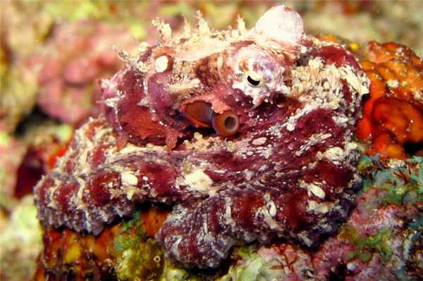 Чтобы не нарваться на неприятности, нужно внимательно следить за окраской осьминога, так как ее цветовая гамма, как правило, отражает состояние и намерения животного. Например, обычная расцветка осьминога — пестро-серо-лиловая; когда он хочет скрыться и спрятаться, то маскируется под окружающее дно; в страхе он становится белым, а в ярости — пурпурно-красным с переливающимися полосами и пятнами. Поэтому, если вы увидели “покрасневшего” от негодования осьминога, старайтесь держаться от него подальше и не докучать ему любопытством.