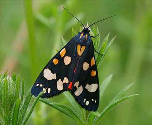 Группы пестрянок в солнечную погоду часто порхают над клумбами. Насекомых легко узнать: на темных синих или зеленых крылышках у них расположены округлые красные пятна. Кроме того, в отличие от других бабочек, у пестрянки луговой крылья складываются кровлеобразно, как у мотыльков. Если бабочку поймать, она начнет выделять отпугивающую пену. В природе на бабочку никто не охотится. Она ядовита и сама очень устойчива к воздействию ядов.