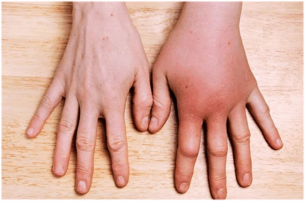 - Опухоль и отек пораженных участков кожи;