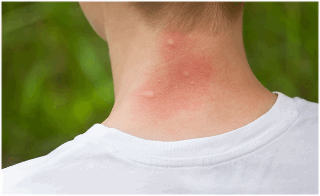 Чаще всего у покусанного человека наблюдается следующая реакция на укусы насекомых: