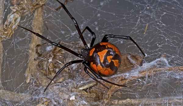 Этот паук встречается во всем мире, красное пятно (часто в форме песочных часов) на животе отличает женскую особь; именно она может укусить. Паучихи имеют черное блестящее тело.
