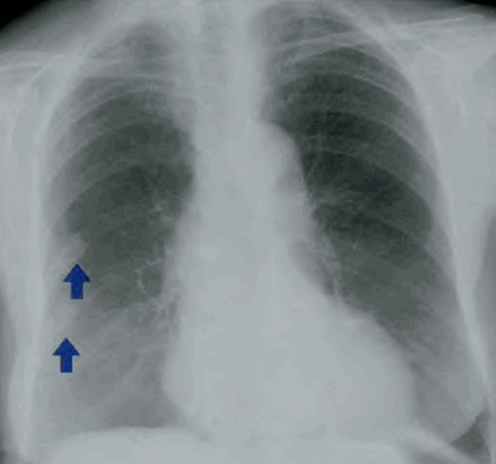 Диагностика: на рентген-снимке определяется частичная локализованная или разлитая (зависит от формы пневмонии) тень, возможны варианты с наличием множественных диссеминированных очагов. При помощи спиральной компьютерной томографии (СКТ) можно точно выявить и локализовать даже мелкие, «невидимые» при рентген-исследовании очаги, определить состояние плевры, наличие жидкости в плевральной полости, СКТ позволяет детально оценить прилегающие отделы неизмененной легочной паренхимы, состояние бронхов, лимфоузлов средостения и прочее.