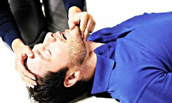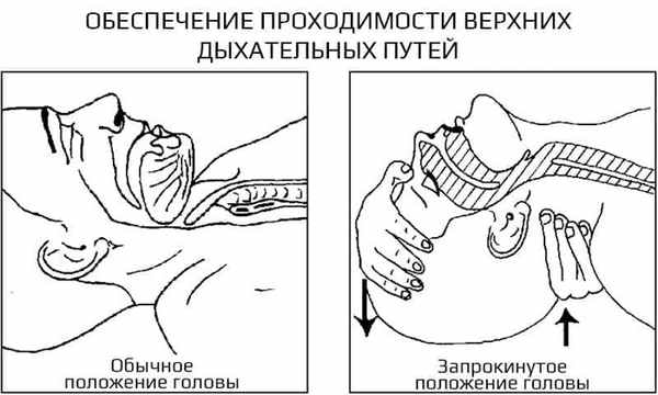 - Выведение вперед нижней челюсти. Это позволяет поддерживать дыхательные пути открытыми, но не предотвращает попадание в них слюны, крови, рвотных масс.