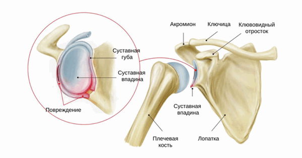 - SLAP-повреждение (повреждение верхней части суставной губы).