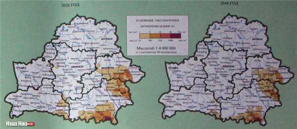Карта ипрогнозируемого загрязнения территорий цезием-137 на 2026 г. и 2046 г.