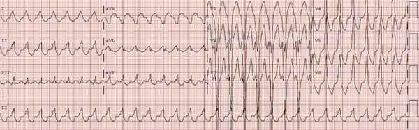 Желудочковая тахикардия — когда при импульсообразовании в системе Гиса — Пуркинье, с ЧСС 160−200/мин, комплексы QRS уширенные до 0,12 с и более, RR одинаковые. Ритм в основном бывает регулярным. Не регулярность иногда отмечается в начале и в конце приступа.