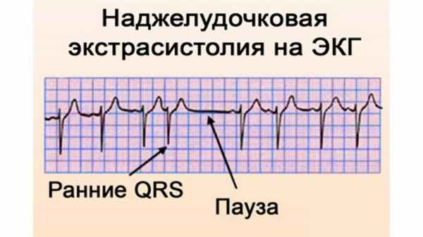 Суправентрикулярная экстрасистолия -обычно неполная компенсаторная пауза, QRS, идентичный предыдущему, P связан с комплексом QRS.