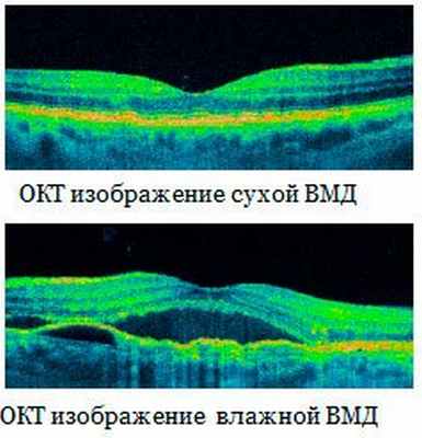 Выделяют две формы ВМД: сухая и влажная. Появлению влажной формы во всех случаях предшествует сухая.