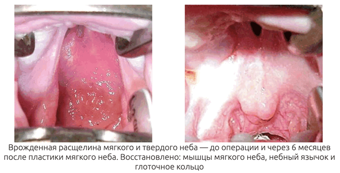 Цель операции: устранить расщелину мягкого неба; восстановить непрерывный мышечный слой в области смыкания с задней стенкой глотки и сформировать глоточное кольцо. Именно это обеспечивает оптимальные условия для развития нормальной речи.