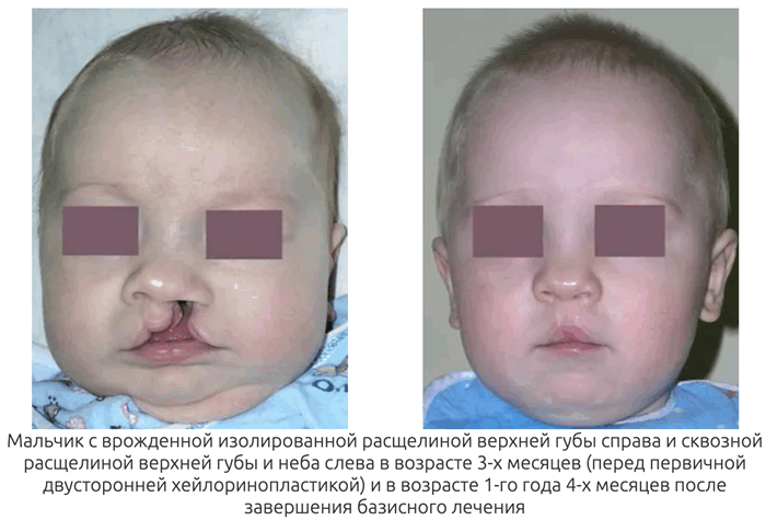 Таким образом, базисное хирургическое лечение проводится в течение первого года жизни. Это позволяет добиться: полного устранения врожденной патологии, восстановления привлекательного и симметричного лица малыша; самостоятельного формирования нормальной речи (в 90% случаев не требующей логопедической коррекции) и предотвратить тяжелые послеоперационные деформации верхней челюсти.