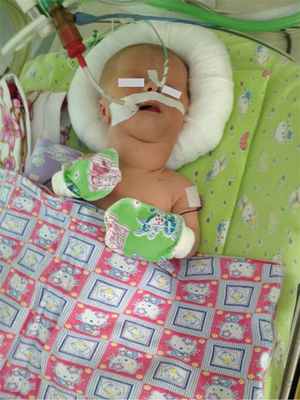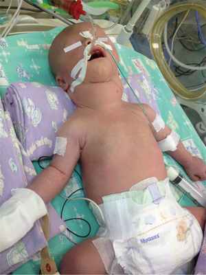 В перинатальном центре, где произошли роды, установлен диагноз синдрома дыхательных расстройств, перинатального гипоксического поражения нервной системы, пневмонии, врожденного порока сердца (дефект межпредсердной перегородки), врожденного гипотиреоза с гигантским зобом.