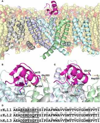 Калиевые (К+) каналы — важные мембранные белки для всех живых организмов, они контролируют вывод ионов калия из организма. Для млекопитающих особое значение имеют каналы с напряженными связями (KVs), в частности KV1.3 —одна из наиболее изученных изоформ К+, которая участвует в развитии аутоиммунных заболеваний (например, рассеянного склероза и сахарного диабета первого типа) и некоторых типов рака.