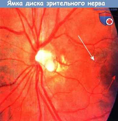 Ямка зрительного нерва представляет собой овальное серое, белое или желтоватое углубление диска зрительного нерва. Обычно ямки зрительного нерва локализуются в его височной части, но могут локализоваться в любом секторе. Располагающиеся в височной части диска ямки часто сопровождаются изменениями прилегающего перипапиллярного пигментного эпителия. Более чем в 50% случаев со дна или из края ямки ДЗН выходят одна или две цилиоретинальные артерии. Хотя чаще всего ямки диска зрительного нерва односторонние, в 15% случаев наблюдаются двусторонние аномалии.