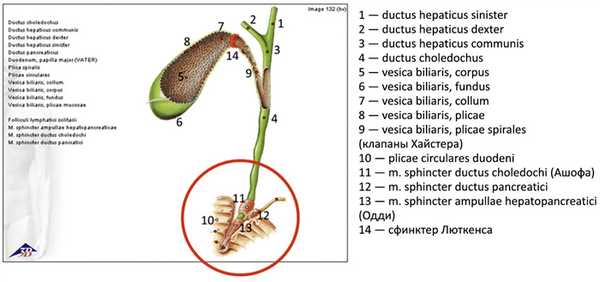 Рис. 8. Сфинктерный аппарат желчевыводящих путей.