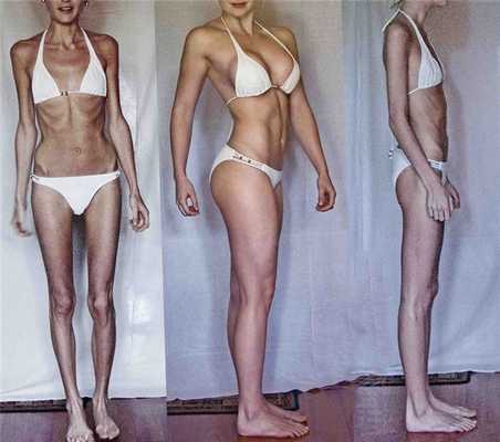 - Кахексия. Наблюдается резко выраженное истощение организма, обычно эта стадия наступает после 1-2 лет развития болезни. Человек чувствует резкое отвращение к еде, может присутствовать страх перед приемом любых жидкостей. Вес ниже нормы, жировая масса минимальна, но при этом стремление худеть преобладает над рациональными аргументами. Итогом кахектической стадии часто становится смерть.