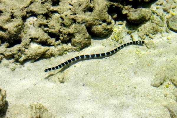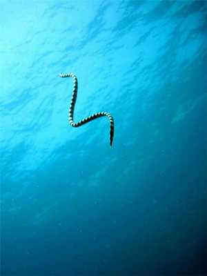 Несмотря на то, что морская змея является ядовитой, она никогда не нападает на людей без явной причины. Если на пути во время купания или дайвинга встречается пресмыкающееся, нужно остановиться, пусть оно спокойно плывет дальше.