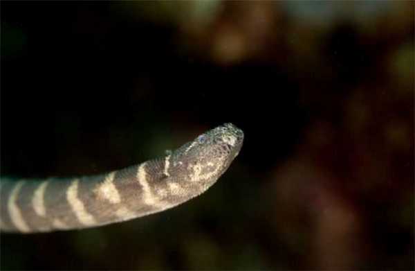 Ядовитые и не ядовитые морские змеи внешне очень явно отличаются от сухопутных, и в первую очередь это касается их укороченного языка.