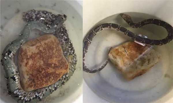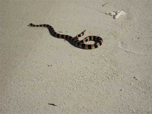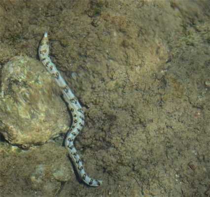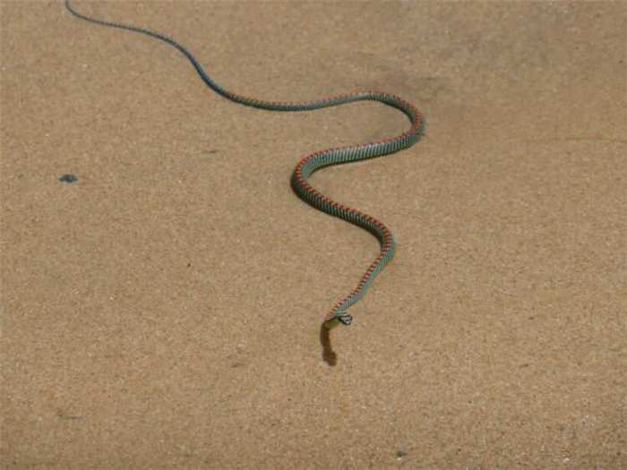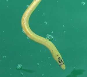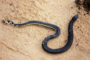 Не трогать и не делать резких движений. Змеи выпускают при опасности небольшое количество яда, но он может быть смертельным и для человека. Опасной является черная морская змея.