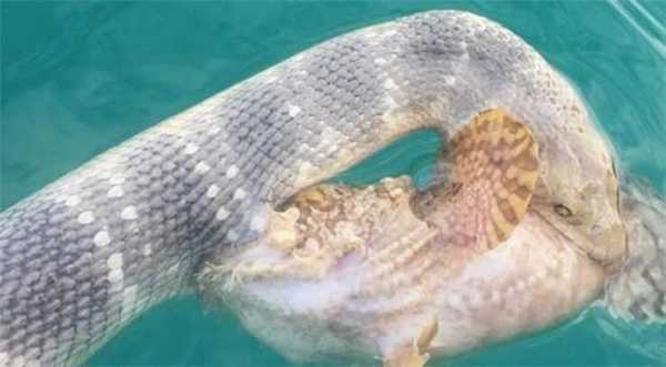 Как и обыкновенные наземные змеи, эти хищники в процессе охоты обездвиживают свою жертву при помощи укуса ядовитыми зубами и целиком ее проглатывают.