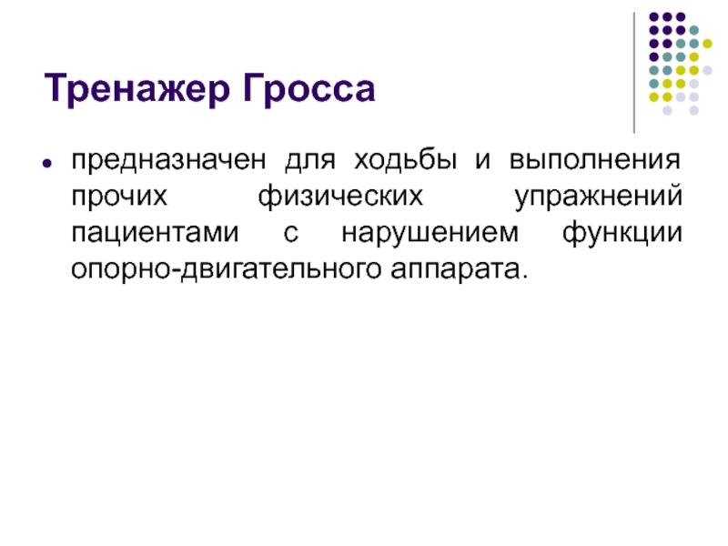 предназначен для ходьбы и выполнения прочих физических упражнений пациентами с нарушением функции опорно-двигательного аппарата.