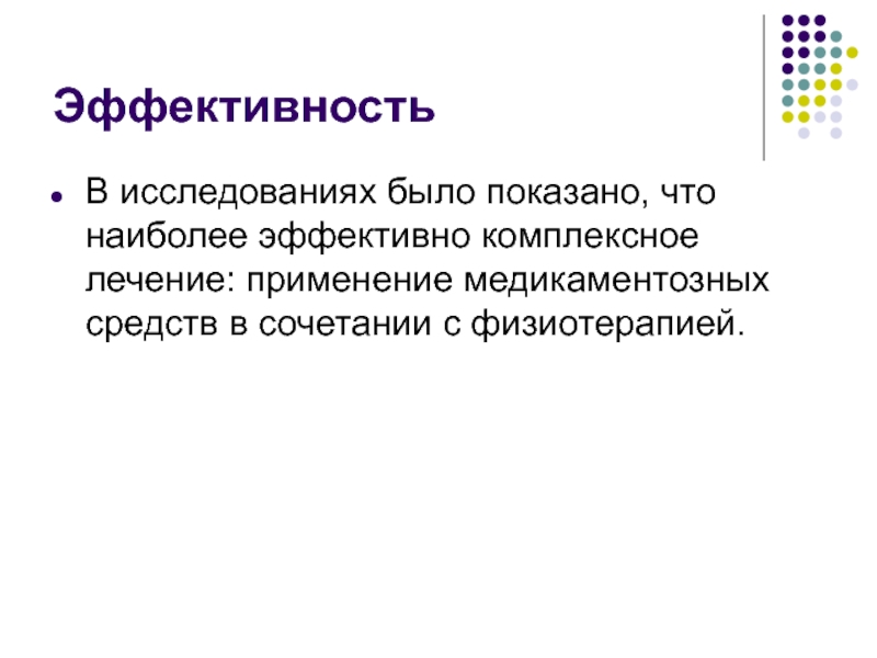 В исследованиях было показано, что наиболее эффективно комплексное лечение: применение медикаментозных средств в сочетании с физиотерапией.