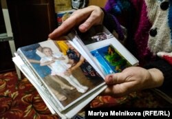 Бабушка Миланны Лариса Степановна с гордостью показывает награды девочки - кубки и медали с городских и республиканских конкурсов. Миланна улыбается и машет ручкой.