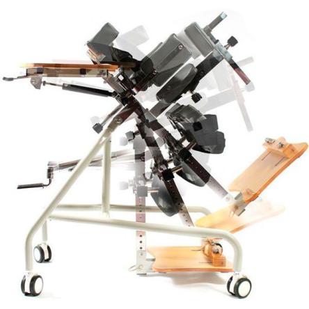 Модель разработана для пассивной реабилитации пациента. Конструкция оснащена столиком для всевозможных занятий и приёма пищи. Надёжная система креплений позволит без особых усилий зафиксировать пациента.
