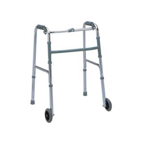 Опорные поручни ходунков выполнены из анодированного алюминия и не подвергаются коррозии, соединяющая рама – из стали с полимерным покрытием. Передние опоры оснащены колесами для облегчения передвижения и большей мобильности. Ходунки легко складываются и не занимают много места, имеют 8 положений регулировки высоты с шагом в 2,5 см. Мягкие накладки на поручнях ходунков не дают рукам скользить. Резиновые наконечники предохраняют от скольжения по твердым поверхностям.