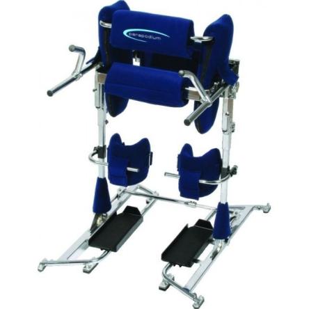 Данный вид представляет собой вертикализатор, предназначенный для пациентов утративших, частично, либо полностью, двигательную активность нижних или верхних конечностей. В данном устройстве человек не может передвигаться самостоятельно, но может выполнять упражнения на разработку активности рук, обучаться элементарным навыкам самообслуживания. Плюс немаловажным фактором является вертикализация пациента, при которой восстанавливаются все функции жизнедеятельности, нарушенные при длительном вынужденном лежании.