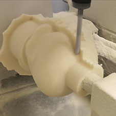 Форму шлема мы вытачиваем с точностью до долей миллиметра на станке с ЧПУ. Весь процесс контролируется компьютером.