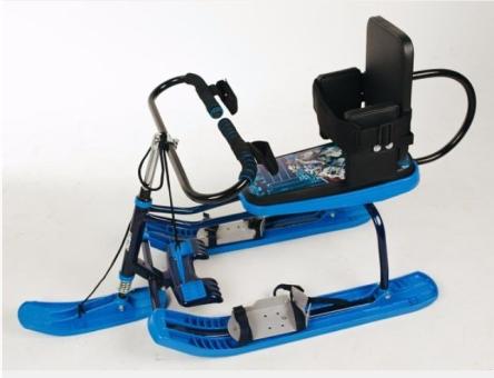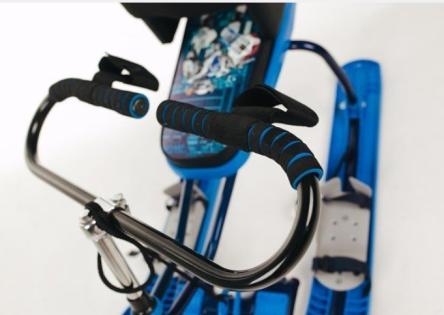 Специальный снегокат для занятий и прогулок на свежем воздухе с вашим ребенком. В стандартной комплектации оснащен креплениями ступни, и регулируемой спинкой с поясом для тела, родительская ручка спереди для фиксации и комфортных поездок на свежем воздухе.