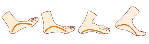 Нормальная высота свода (при условии, что вы стоите на двух ногах) позволяет просунуть под стопу указательный палец на 11-25 миллиметров. Все что меньше 11 мм свидетельствует о недостаточной высоте свода, все что больше — о чрезмерной.