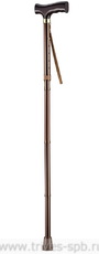 Трость телескопическая с кнопочной фиксацией, хромированная, выполнена из высокопрочного алюминиевого сплава. Т-образная рукоятка выполнена из прочного не скользящего пластика. Опора трапециевидная с 4-мя упорами. Насадки на упоры резиновые, прочные, не скользящие, сменные.