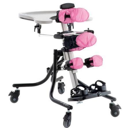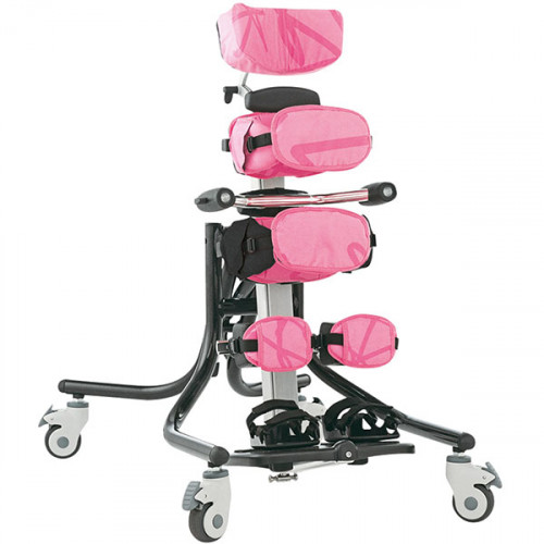 - может использоваться с тремя видами шасси: стационарным, на колесах и с большими колесами, В последнем случае ребенок, находясь в вертикальном положении, может самостоятельно передвигаться, вращая приводные колеса руками.
