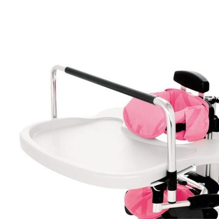 Входящий в комплект столик можно использовать в любом положении, и его можно регулировать, чтобы обеспечить удобное положение ребенка и стимулировать его взаимодействие с объектами, а также улучшить подвижность и функцию конечностей и верхней части туловища.