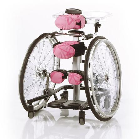 - может использоваться с тремя видами шасси: стационарным, на колесах и с большими колесами, В последнем случае ребенок, находясь в вертикальном положении, может самостоятельно передвигаться, вращая приводные колеса руками