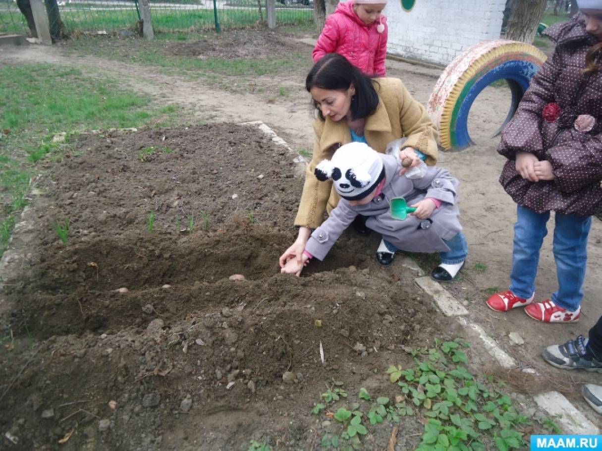 На нашем участке есть огород, на котором мы вместе с детьми весной высаживаем рассаду, сеем различные семена, поливаем,ухаживаем за огородом,наблюдаем за процессом роста семян. Особенно детям нравится посадка картофеля и сбор урожая осенью, а выкопанный картофель мы относим на кухню и повара отваривают ее для нас. Ох, и хороша своя картошечка!